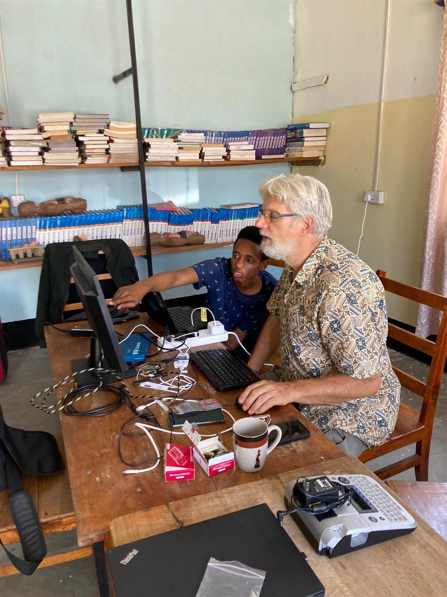Hussein & Darko developing the RPi server, Trinity School, Boma, TZ