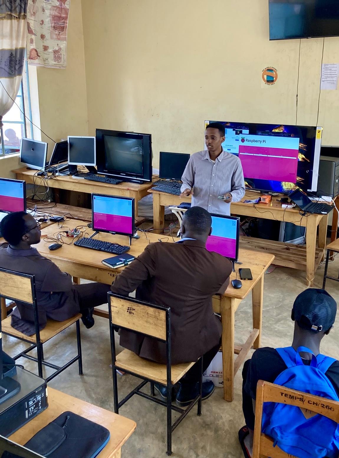 I am forwarding these photos that we took yesterday during and after the second day of the RPi training program. We have two teachers from Tegemeo School, three teachers from Ruicho school, Francis Ngowi (Tanzania Chamber of Commerce), Antigon Ngowi (Computer Science Student Dar es Salem), four students from AZBGC in Uganda, and Hussein.