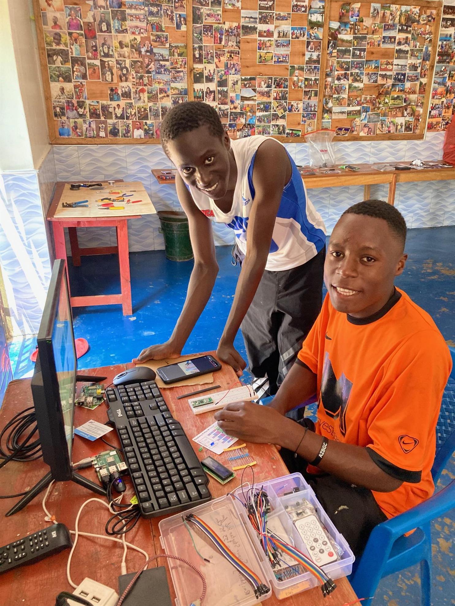 Hussein & Darko developing the RPi server, Trinity School, Boma, TZ