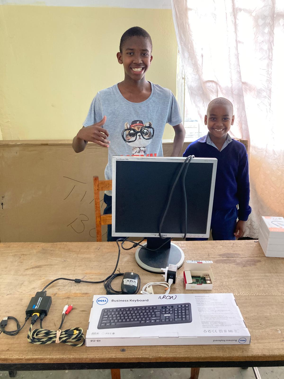 (2) Boma, TZ: Gift (Secondary 3) & Assante (Primary 2) with a new RPi workstation at Trinity School