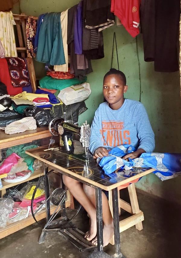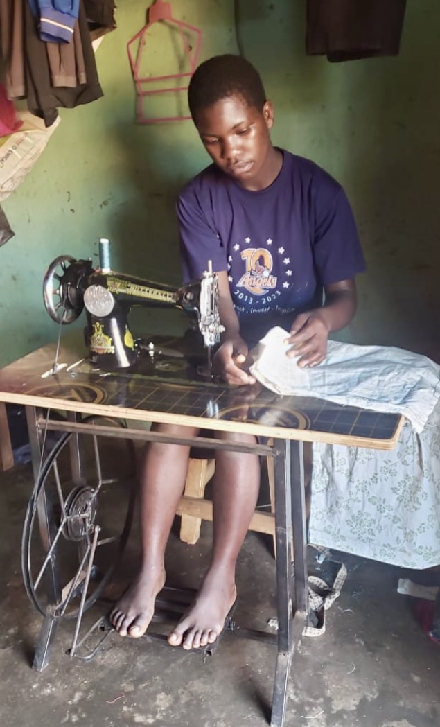 At AZBGC this program run by the senior girls and a young woman, Flavia, who has learnt to sew commercially and will be the senior trainer for our program. She is 15 and is in seventh grade. We provided the Girls House at AZBGC with the same fabrics and sewing materials we provided to Trinity Academy. The Girls House already had two sewing machines and Flavia has access to the machines at the shop where she works.