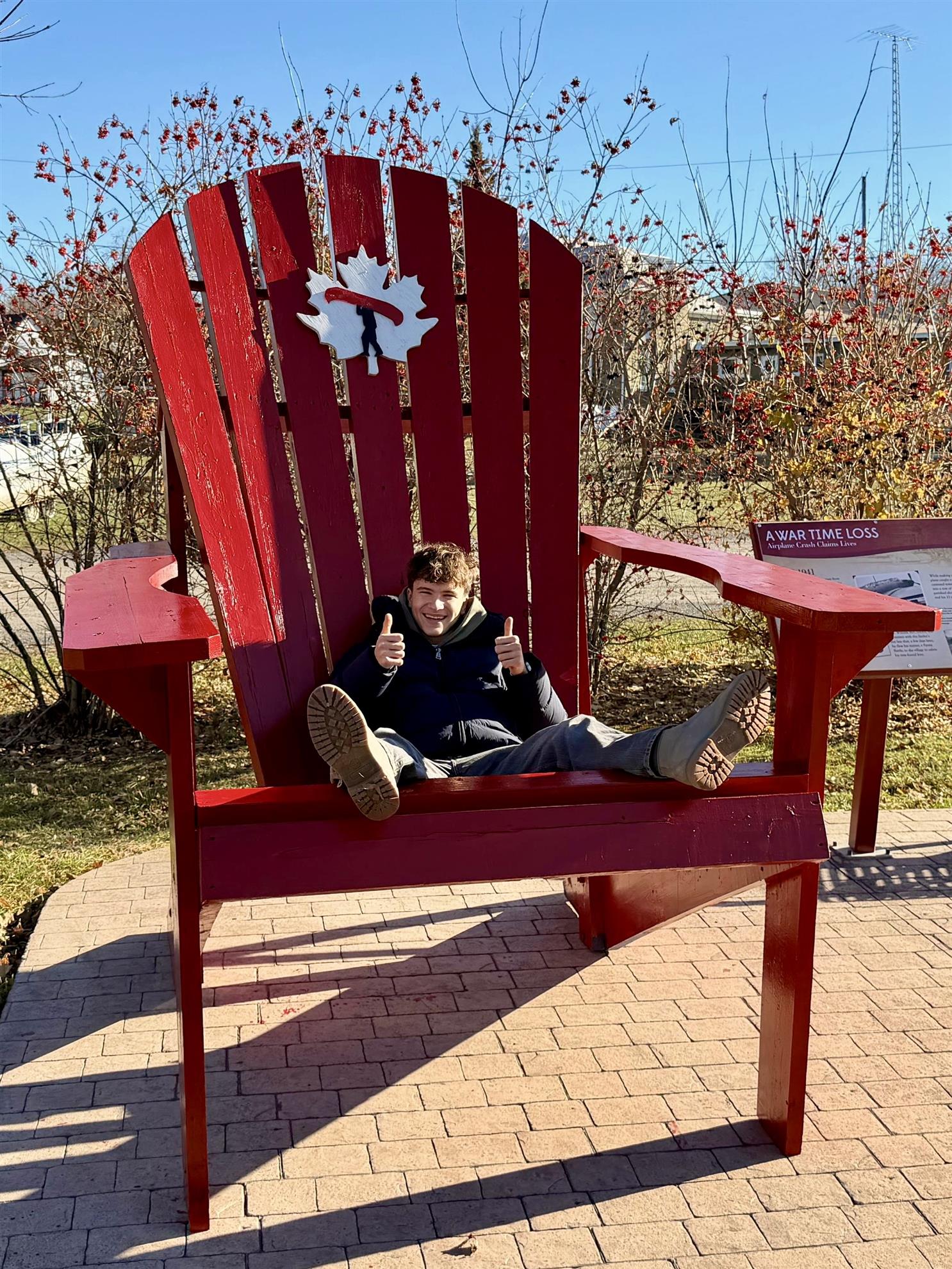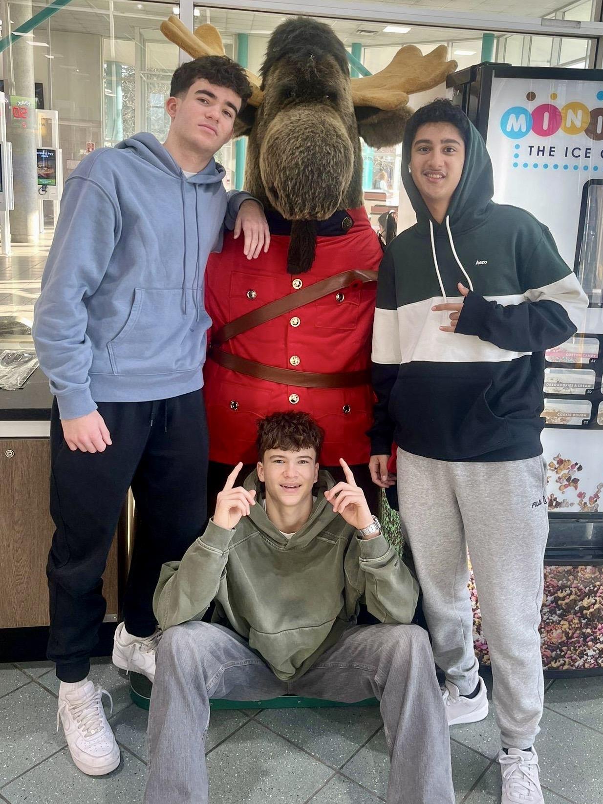 (E) - Together with friends from Itay & Brazil, Christian meets up with a Canadian Moose mascot on the way home.